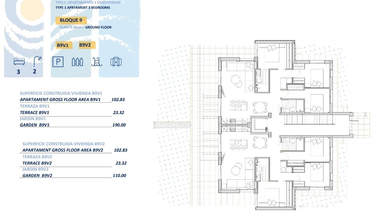 De appartementen van Mirador Santa Rosalia zijn ontworpen met jouw comfort in gedachten. Ieder appartement beschikt over een open woon- en eetkamer met grote ramen die zorgen voor een overvloed aan natuurlijk licht en een gevoel van ruimte creëren. Met 3 ruime slaapkamers en 2 badkamers, waarvan één en-suite, biedt dit appartement alles wat je nodig hebt voor een luxe levensstijl. De moderne keuken is volledig uitgerust en voorzien van alle gemakken die je kunt wensen.
